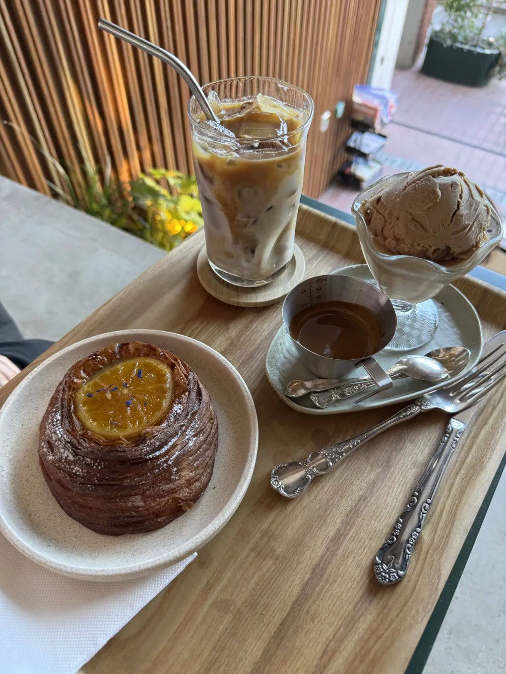 Ordered an almond affogato, a latte, and a danish. Just so good.